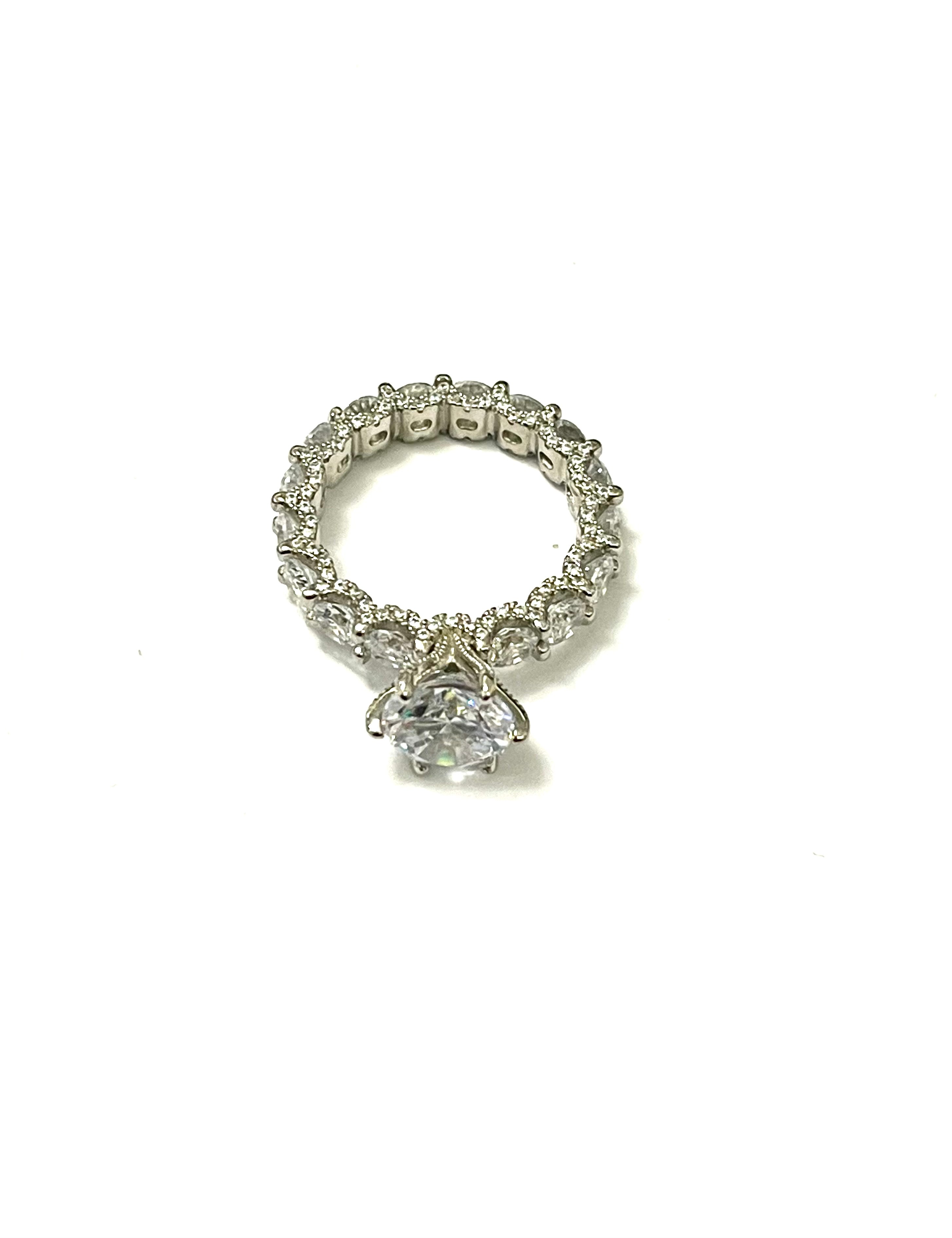 Anello veretta con gambo laterale zirconato bianco e solitario bianco in argento rodiato TIT925%