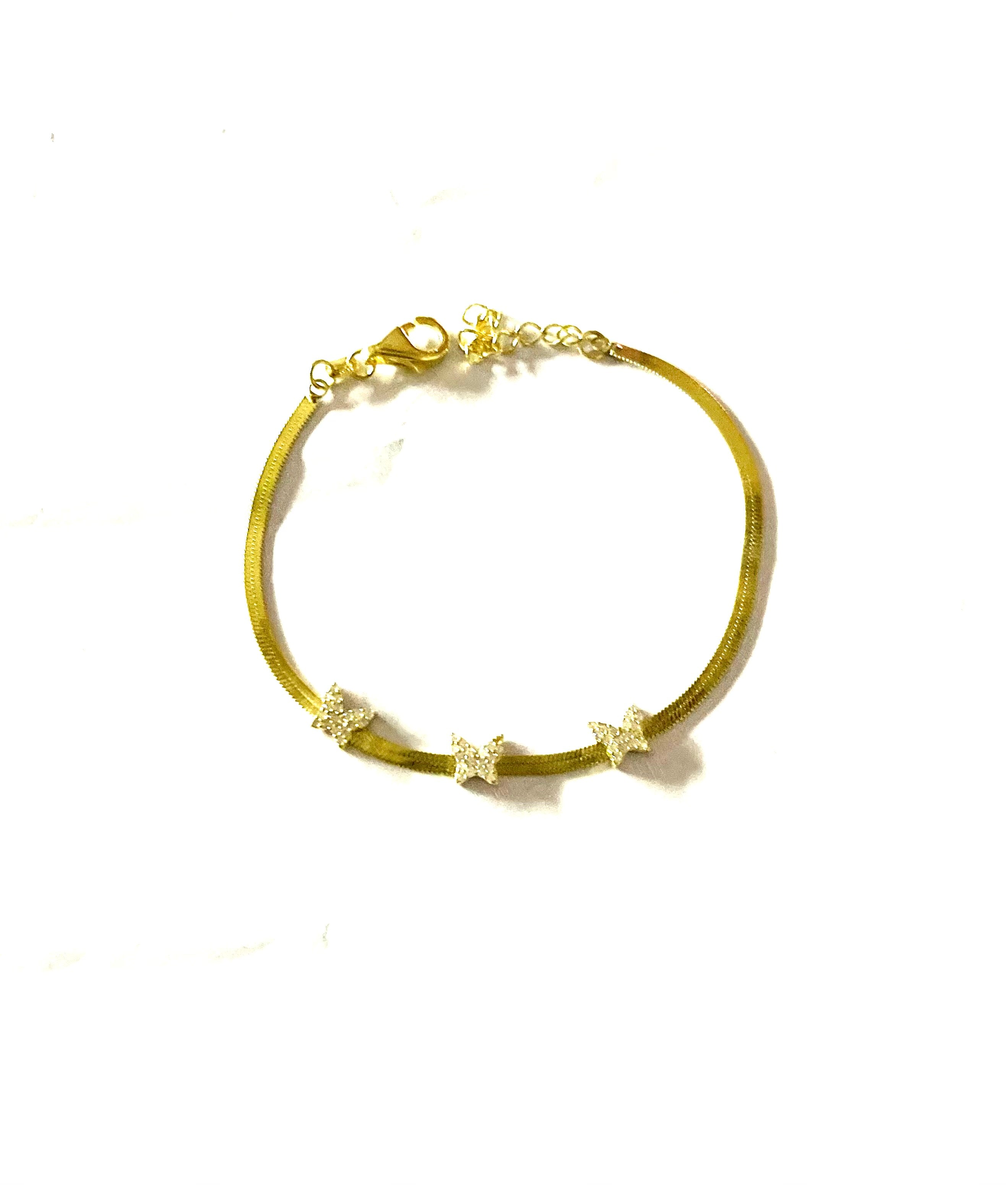 Bracciale maglia spiga piatta con 3 elementi farfalle zirconate bianche in argento dorato TIT925%