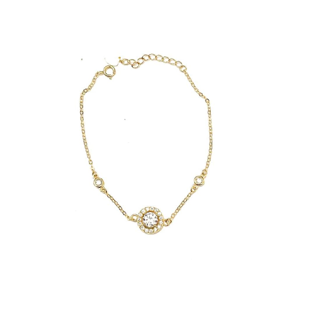 Bracciale forzatina con tondo in argento dorato TIT.925% e zirconi bianchi 17-20 cm.