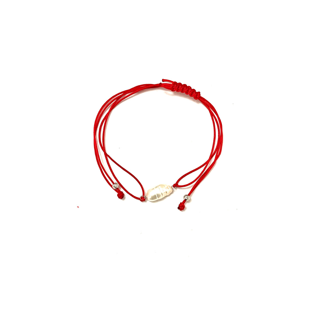 Bracciale in cordino rosso con perla barocca in argento rodiato TIT925%