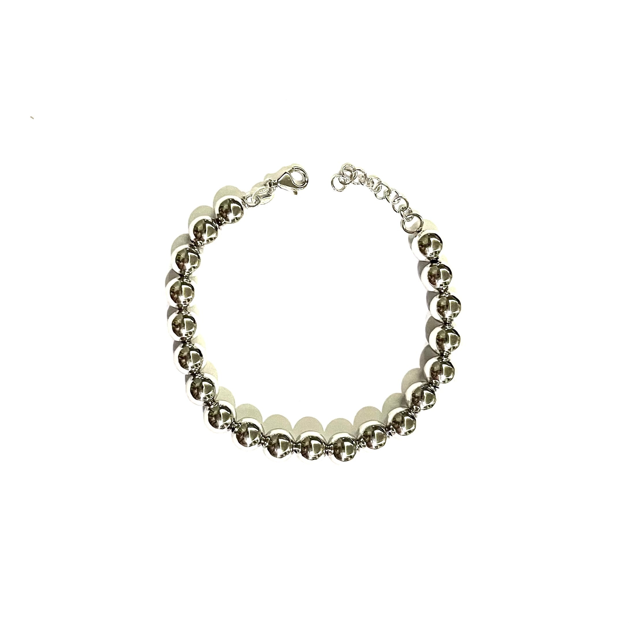Bracciale a sfera liscia 8mm placcato oro bianco in argento TIT925%