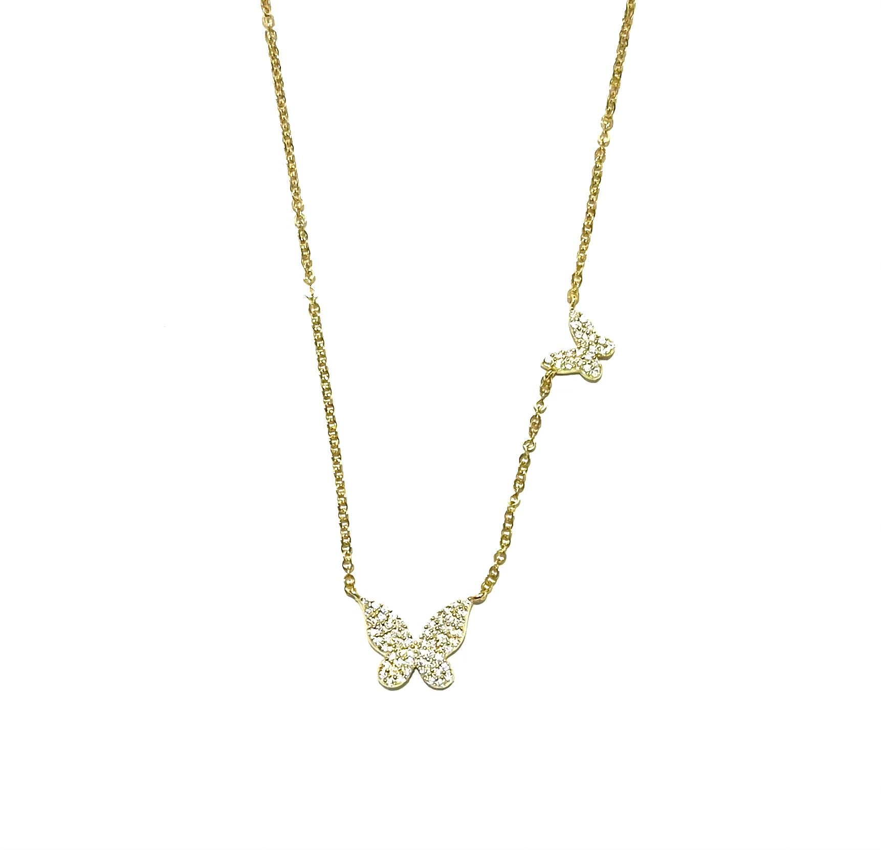 Collana maglia forzatina con farfalla centrale e laterale in pavé di zirconi bianchi placcata oro giallo in argento TIT925%