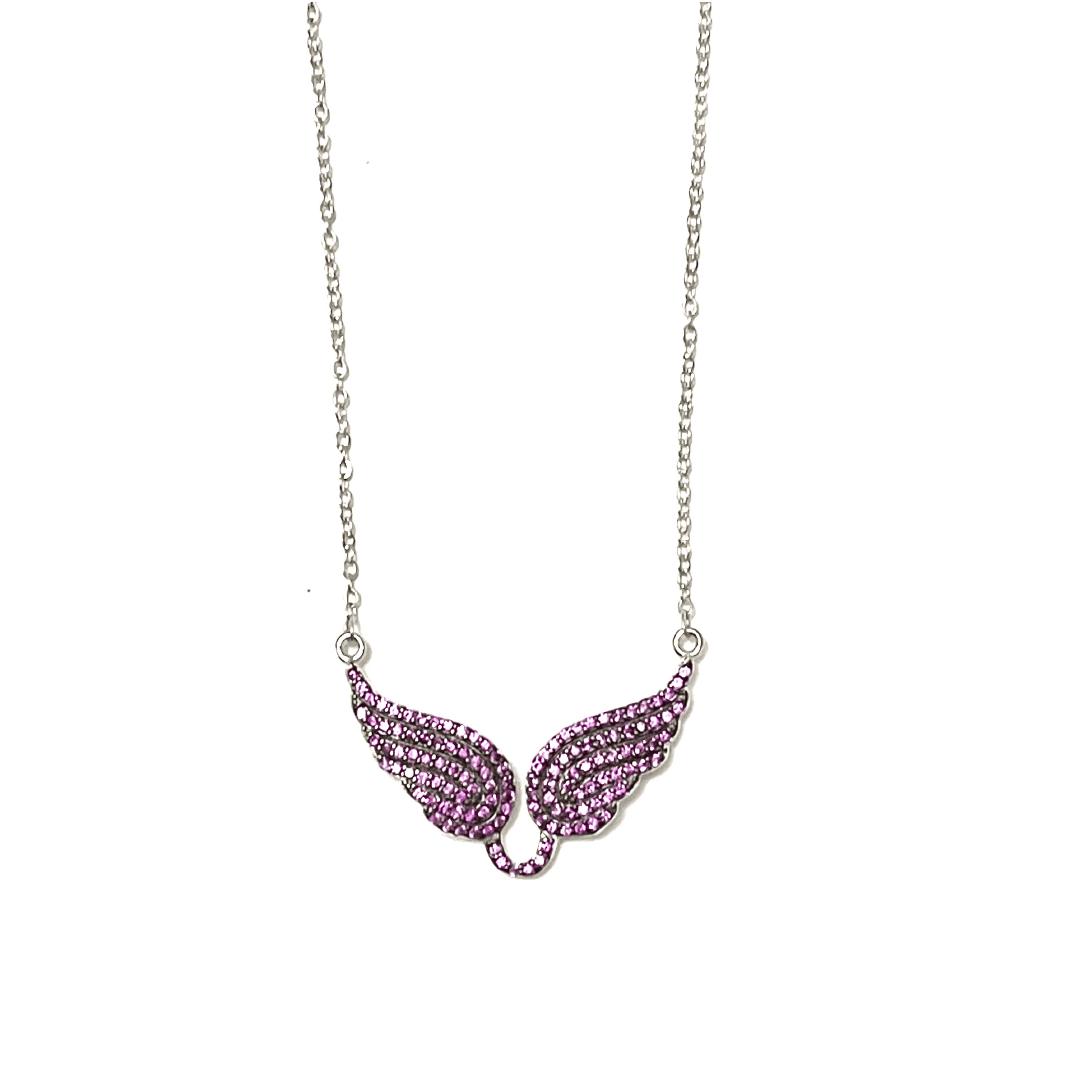 Catena forzatina con ali centrali in argento rodiato TIT 925% e zirconi rossi.