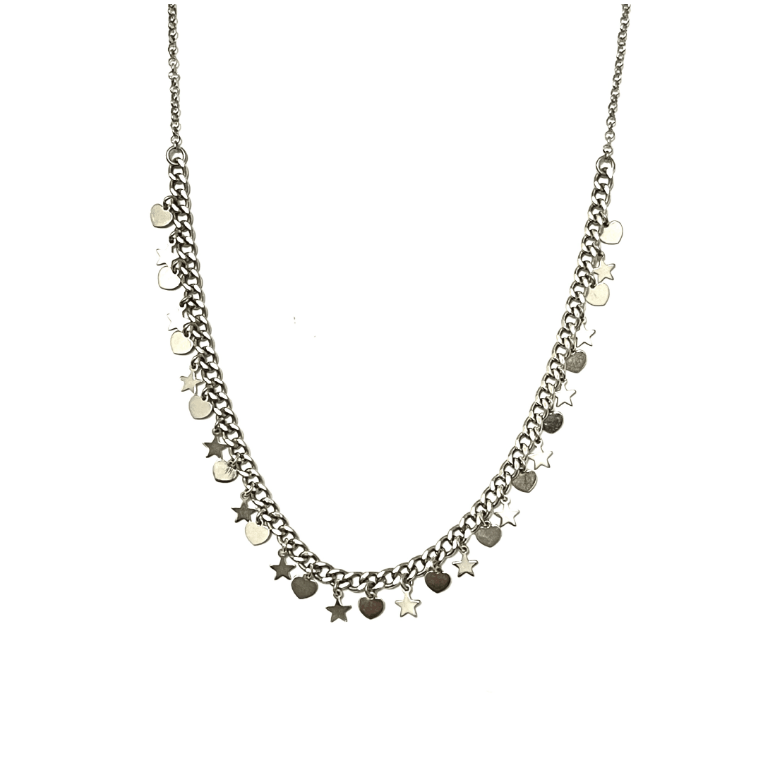 Collana grumetta con stelle in argento rodiato TIT925%.
