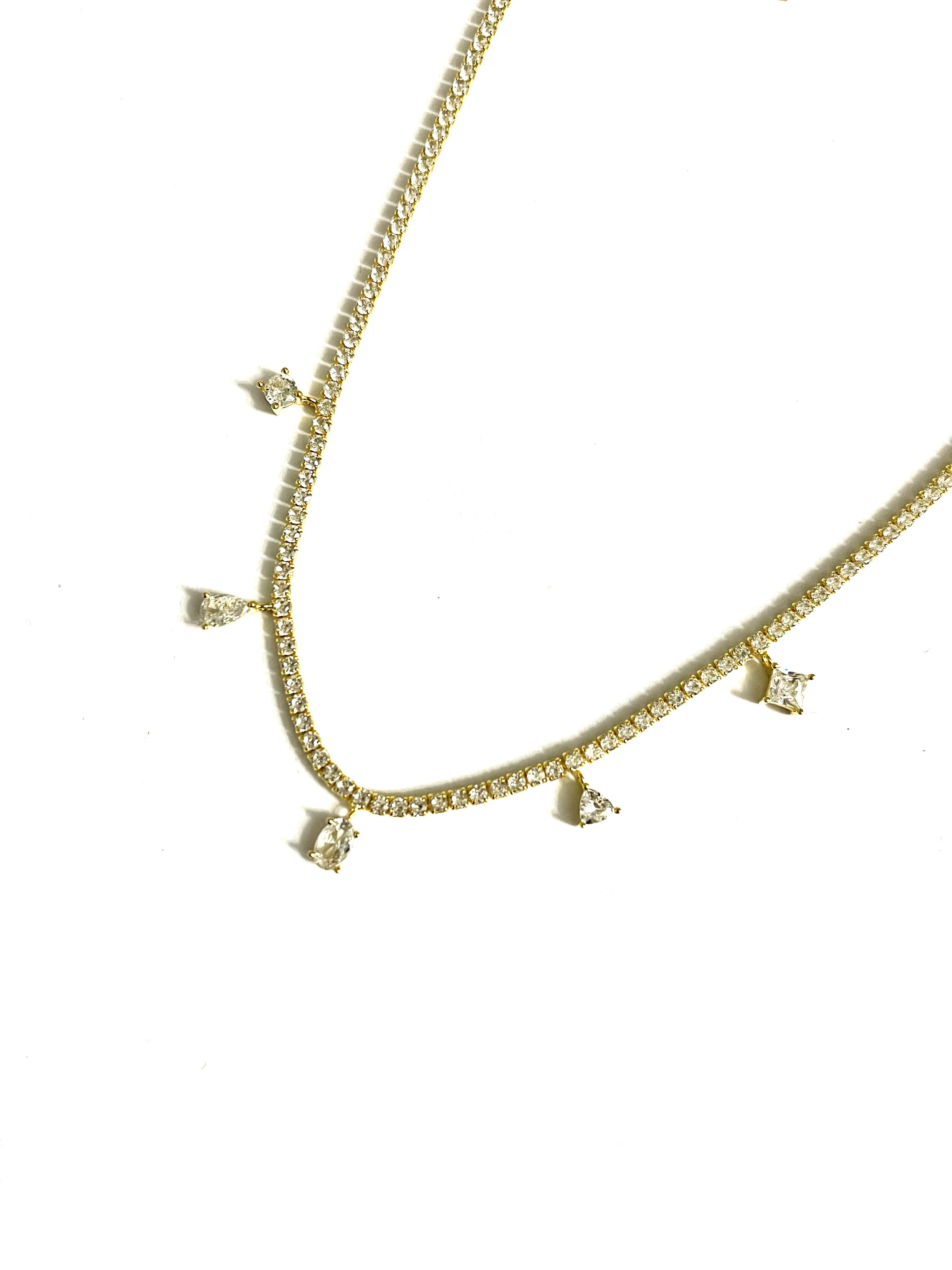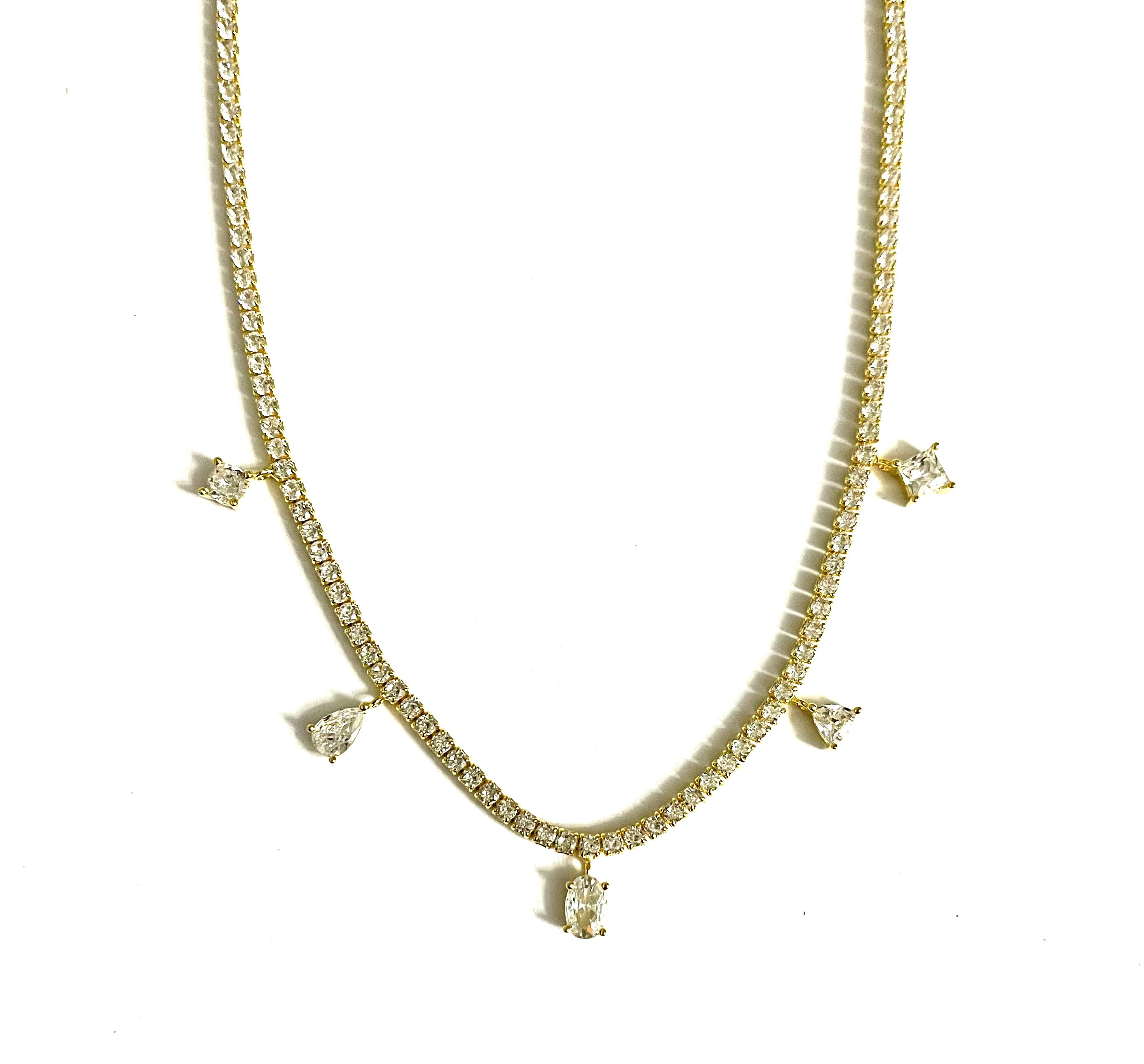 Collana tennis con elementi pendenti di zirconi bianchi placcata oro giallo in argento dorato TIT925%