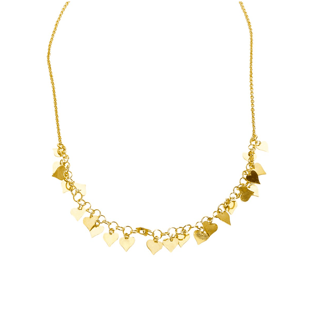 Collana maglia rolò con segmento centrale maglia giotto con cuori a lastra pendenti in argento dorato TIT925%.