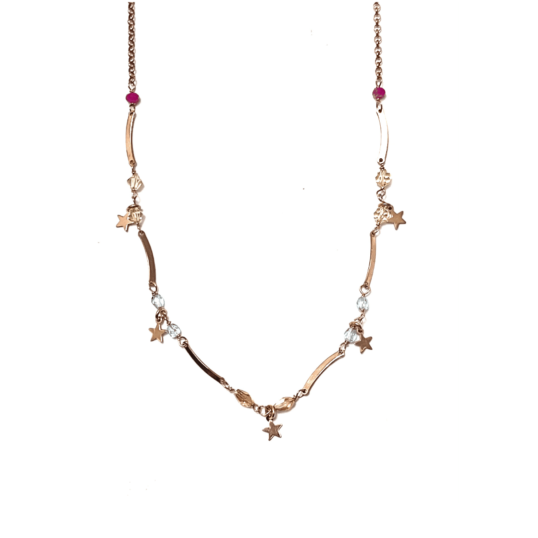 Collana con stelle in argento rosato TIT 925% e pietre dure.