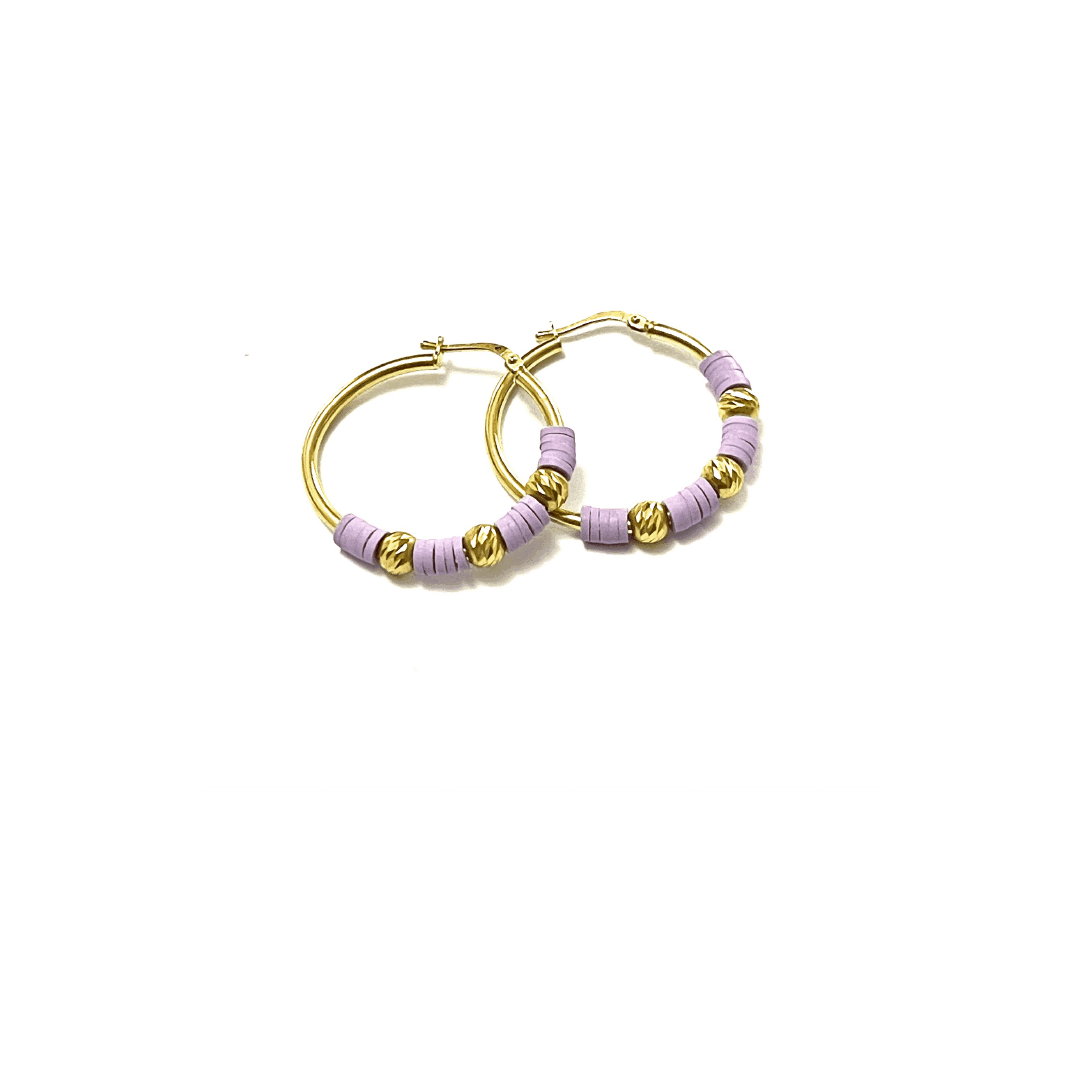Orecchini 30MM con elementi in pasta polimerica glicine e sfere diamantate in argento dorato TIT925%