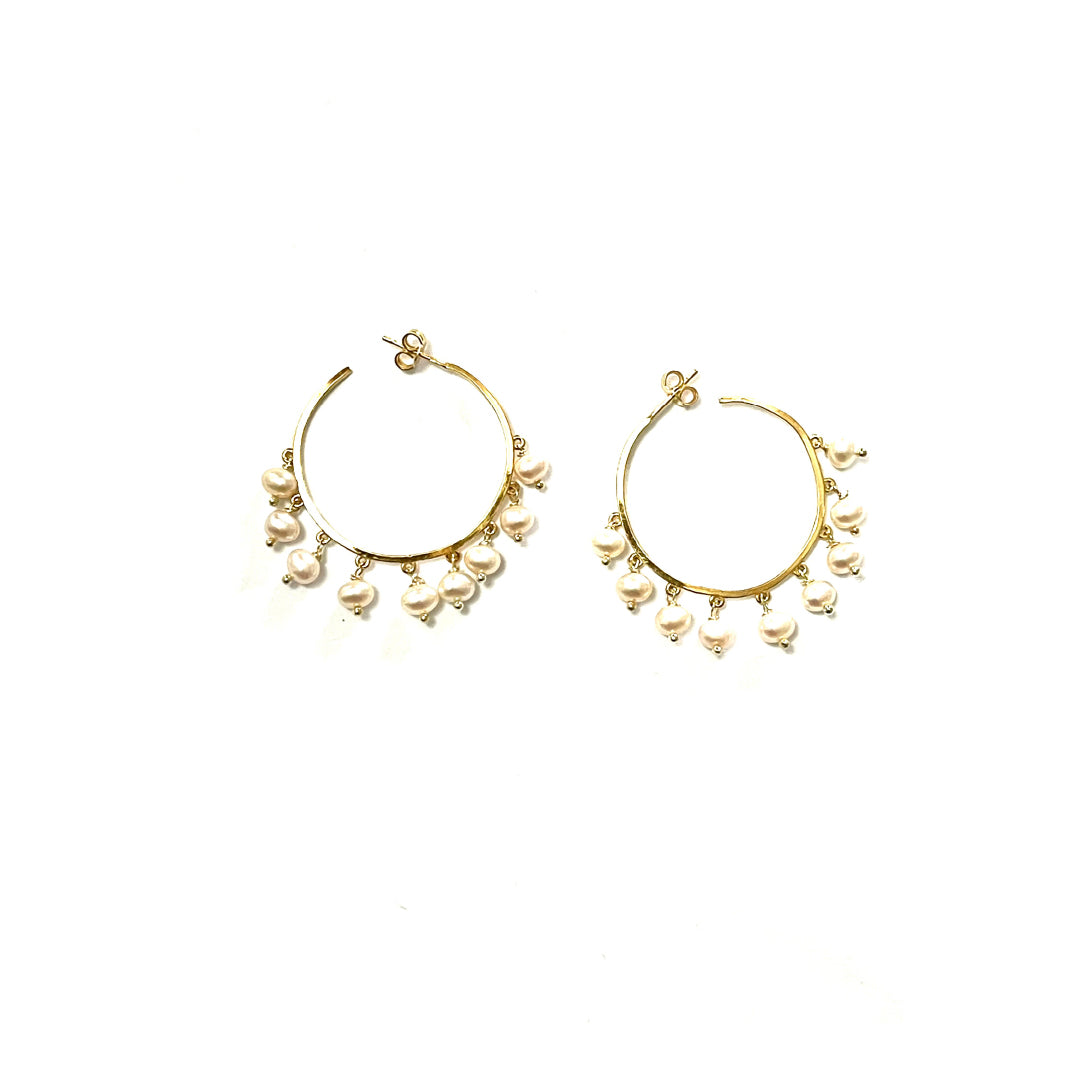 Orecchini a cerchio con perle pendenti coltivate in acqua dolce in argento dorato TIT925%