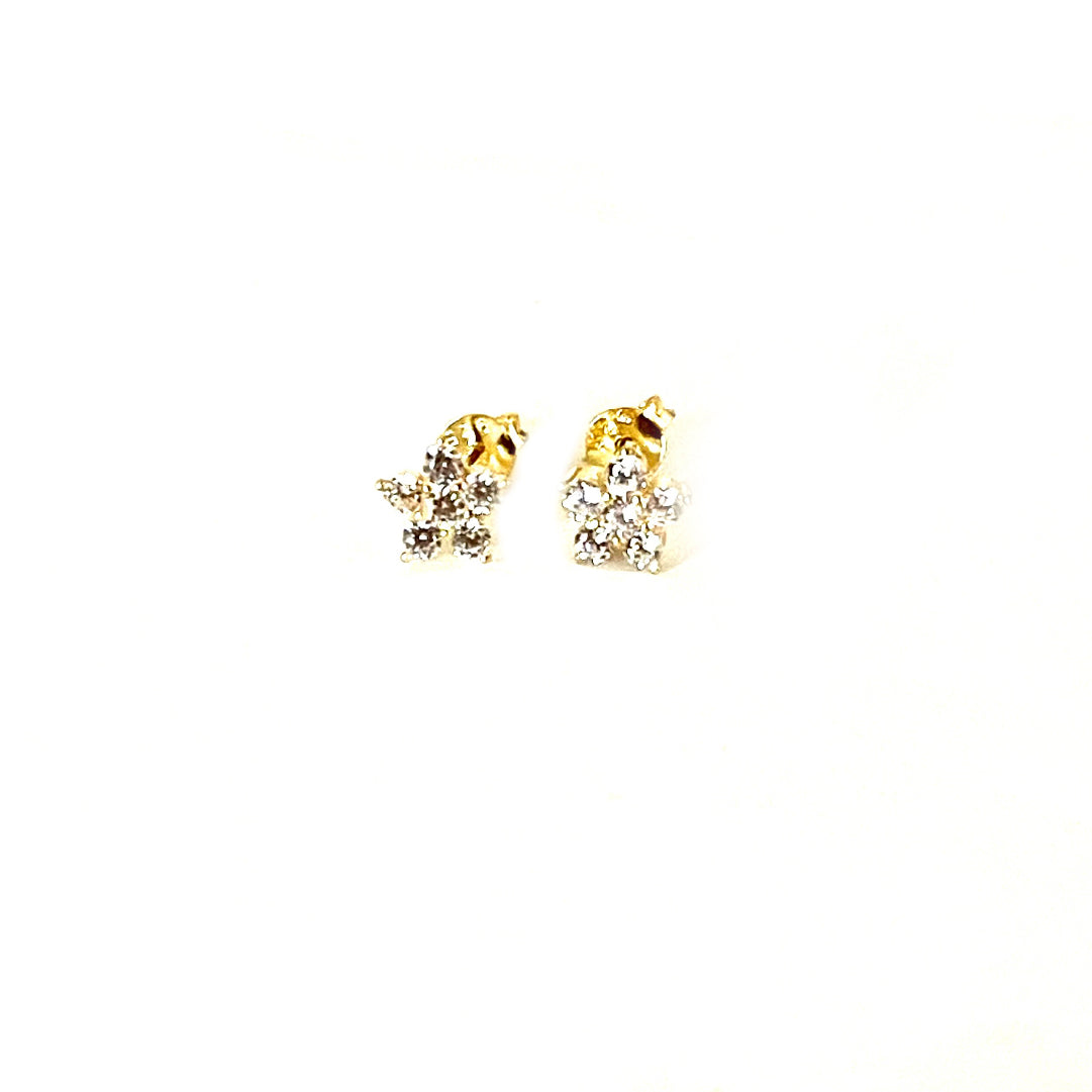 Orecchini lobo a fiore in argento dorato TIT925% e zirconi bianchi