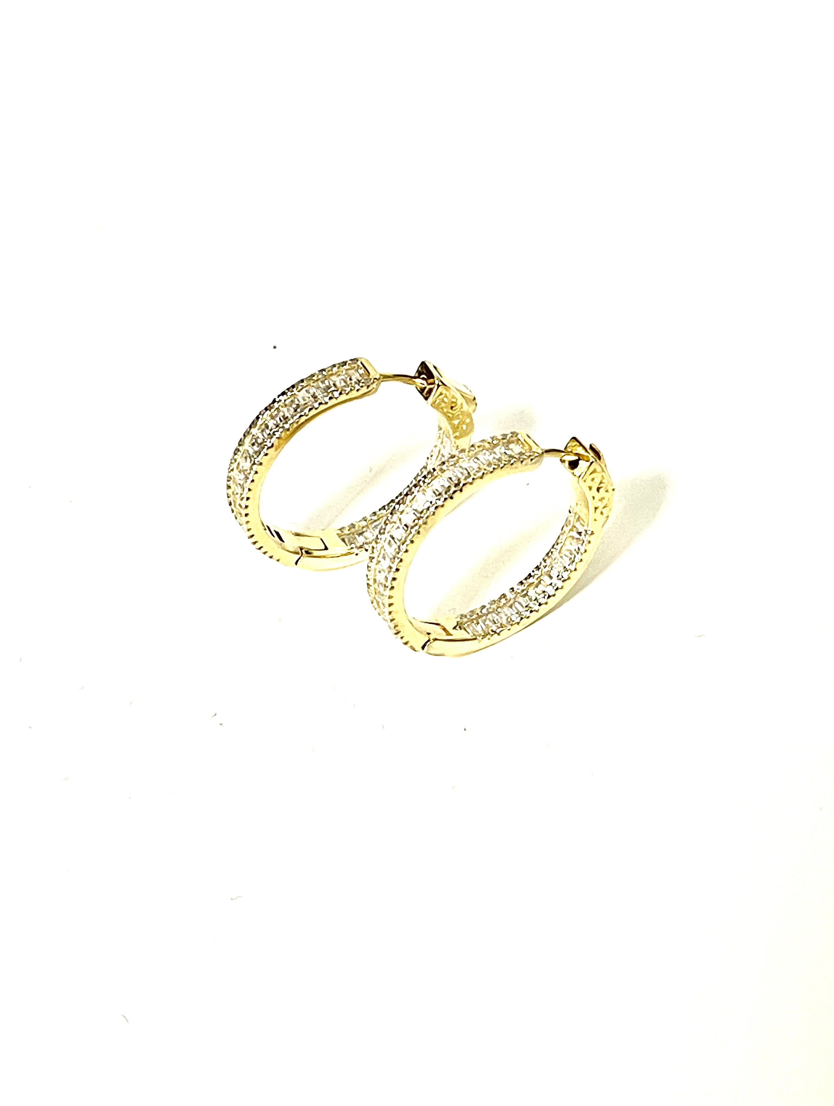 Orecchini cerchio con zirconi bianchi taglio baguette in argento dorato TIT925%