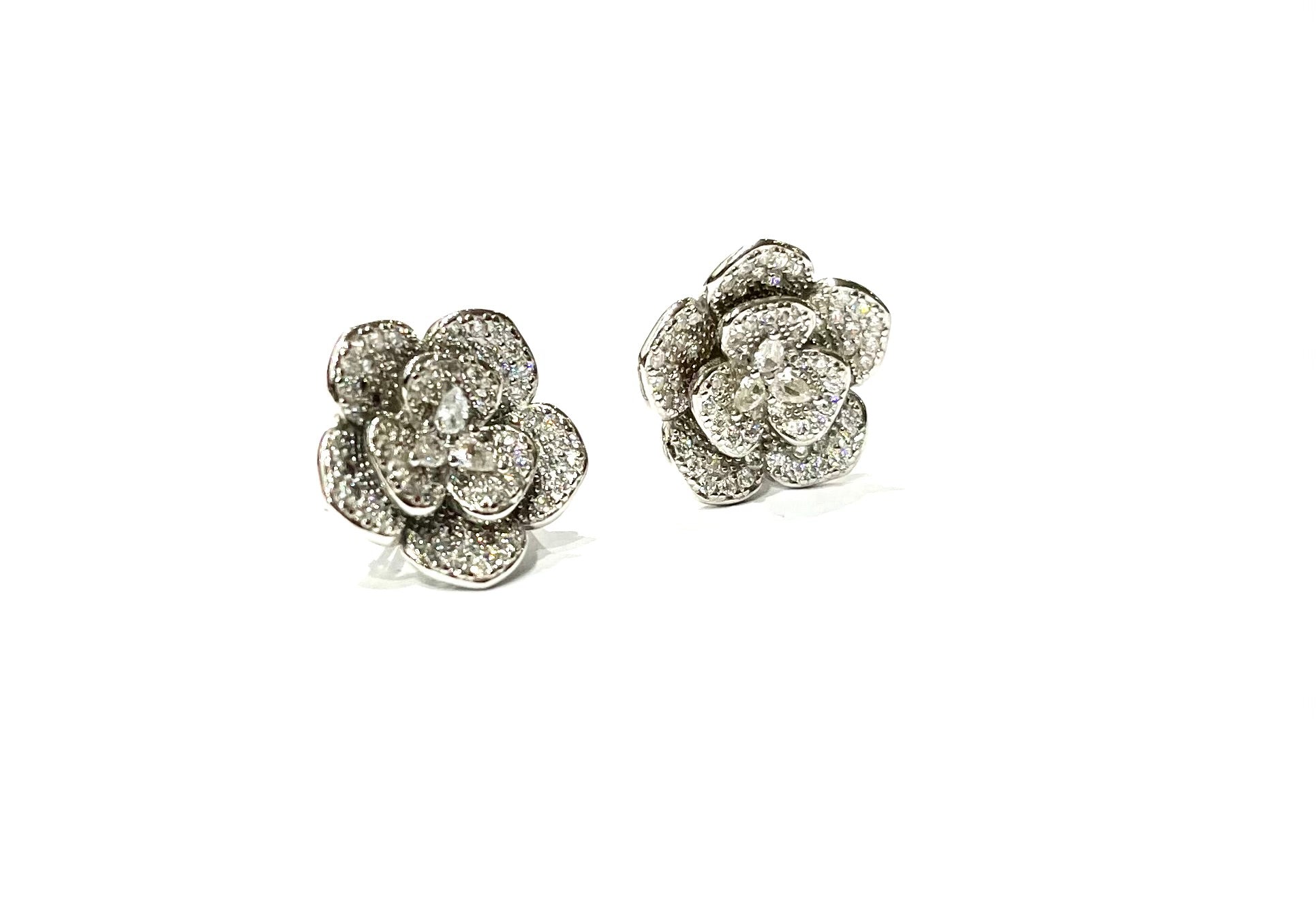 Orecchini a lobo fiore a pavé di zirconi bianchi con attacco perno e clip placcato oro bianco in argento TIT925