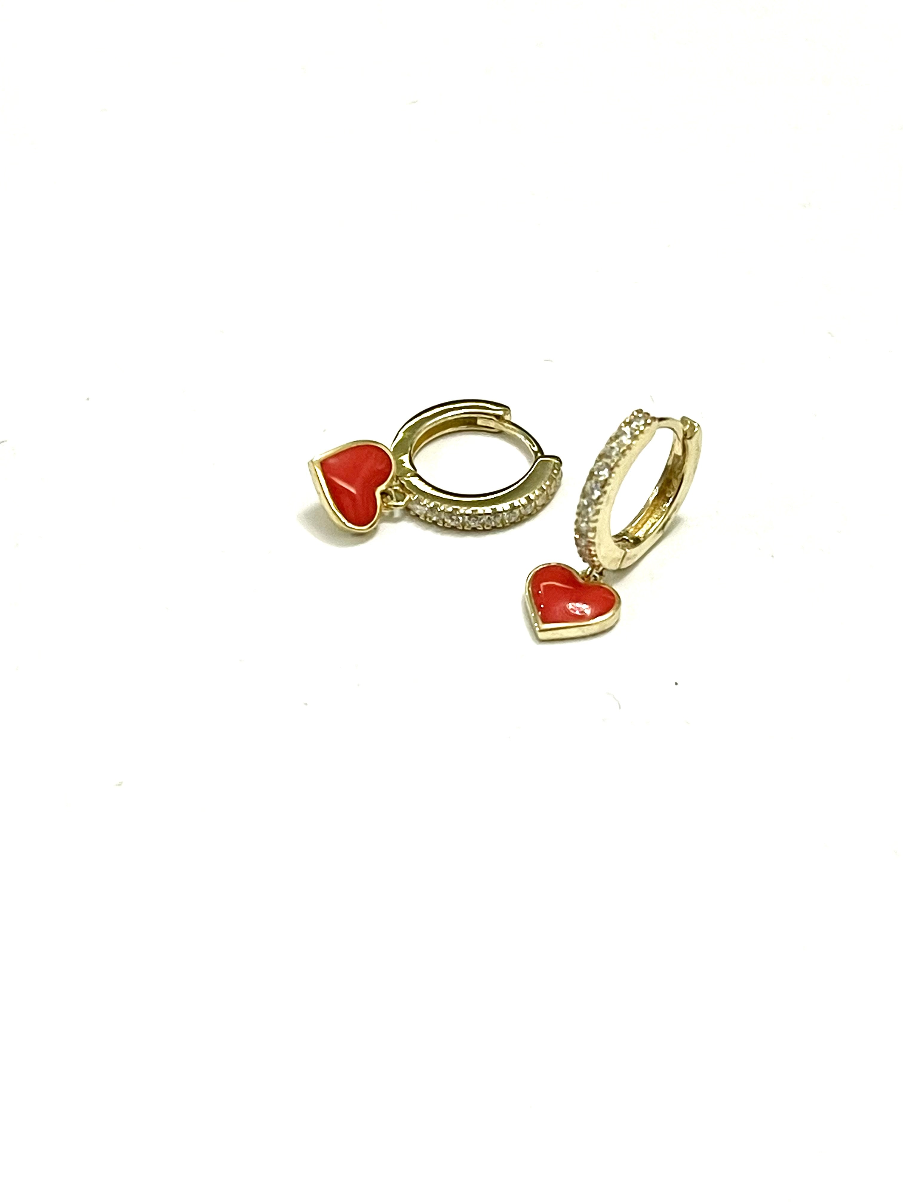 Orecchini cerchio semizirconato con cuore pendente smaltato arancione e chiusura a scattino in argento dorato TIT925%