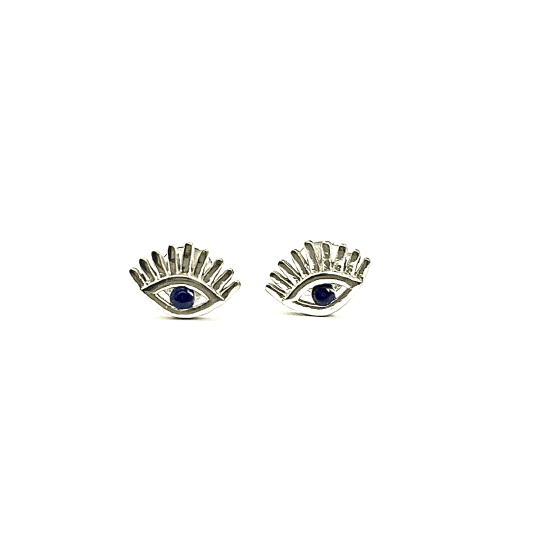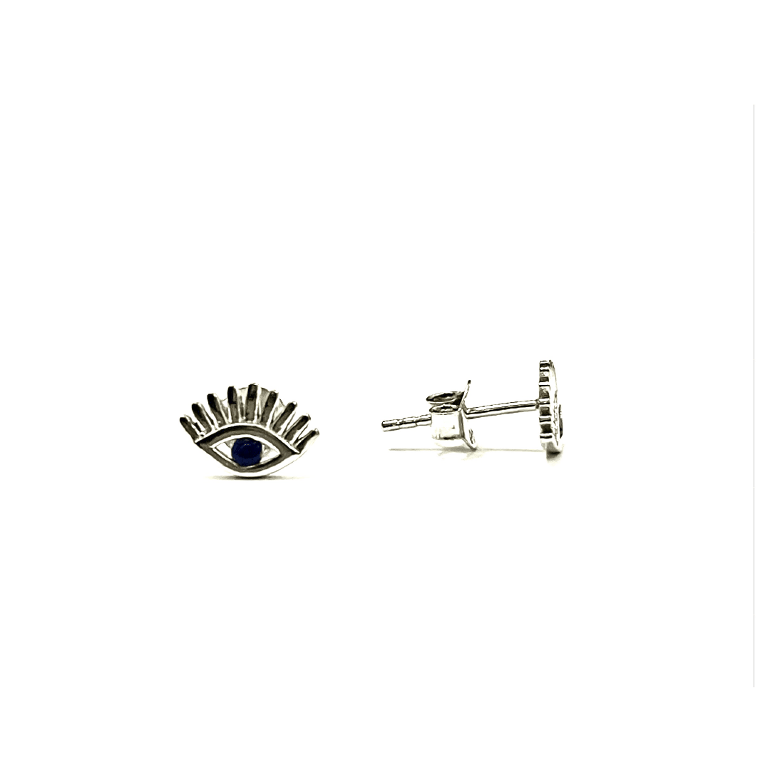Orecchini a lobo occhio a lastra traforata con pupilla in pasta di turchese in argento rodiato TIT925%.