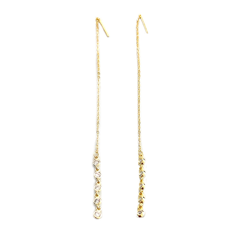 Orecchìni saliscendi con segmento maglia forzatina e zirconi bianchi cipollina pendenti in argento dorato TIT925%.