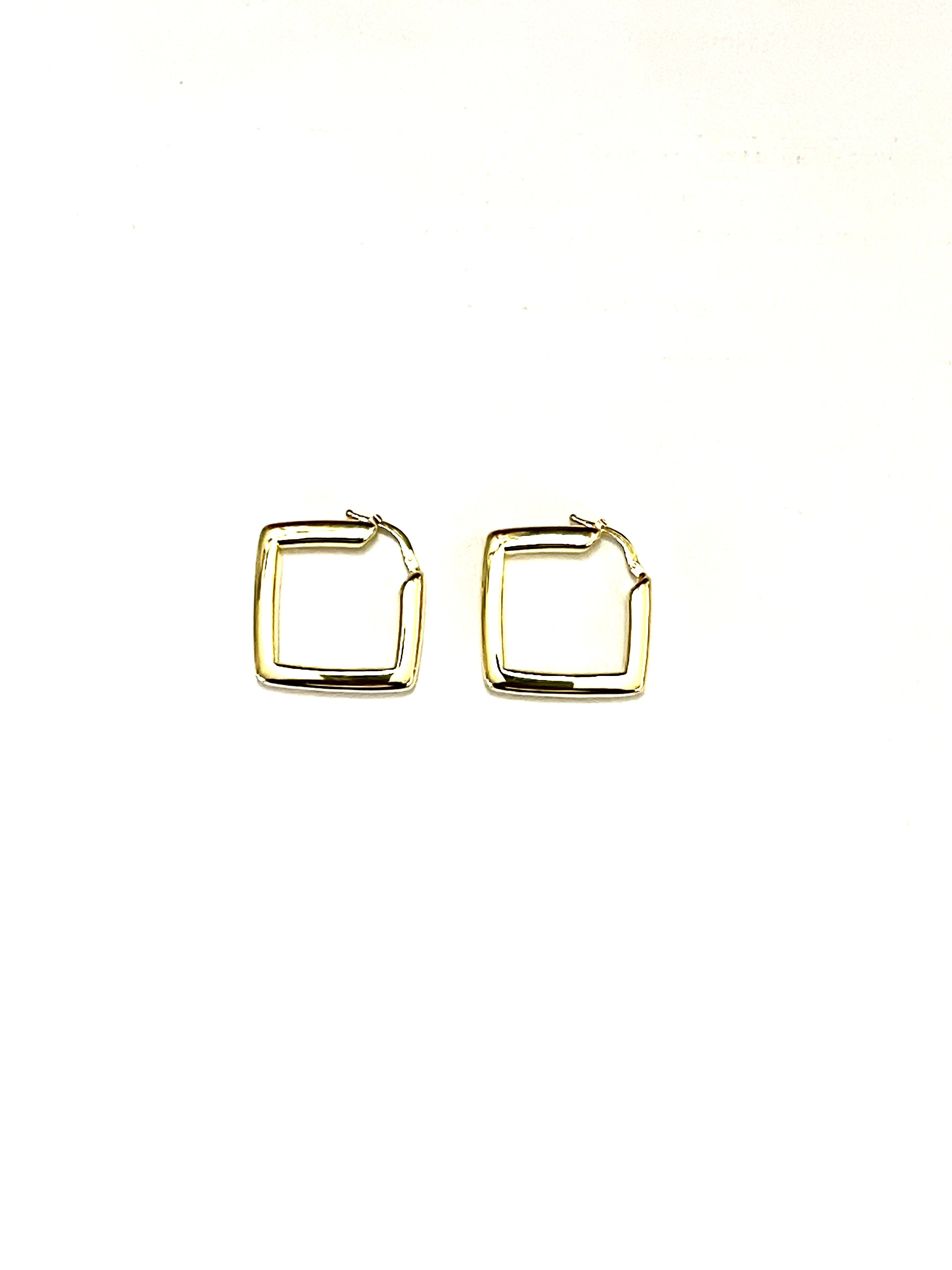 Orecchini a rombo con canna tubolare a sezione quadrata in argento dorato TIT925%. Dim.38x35.6mm - Sp.4.5 mm