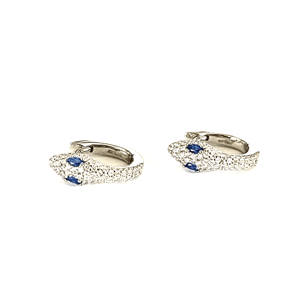 Orecchini scattino serpente in argento rodiato TIT925% e zirconi bianchi e blu.