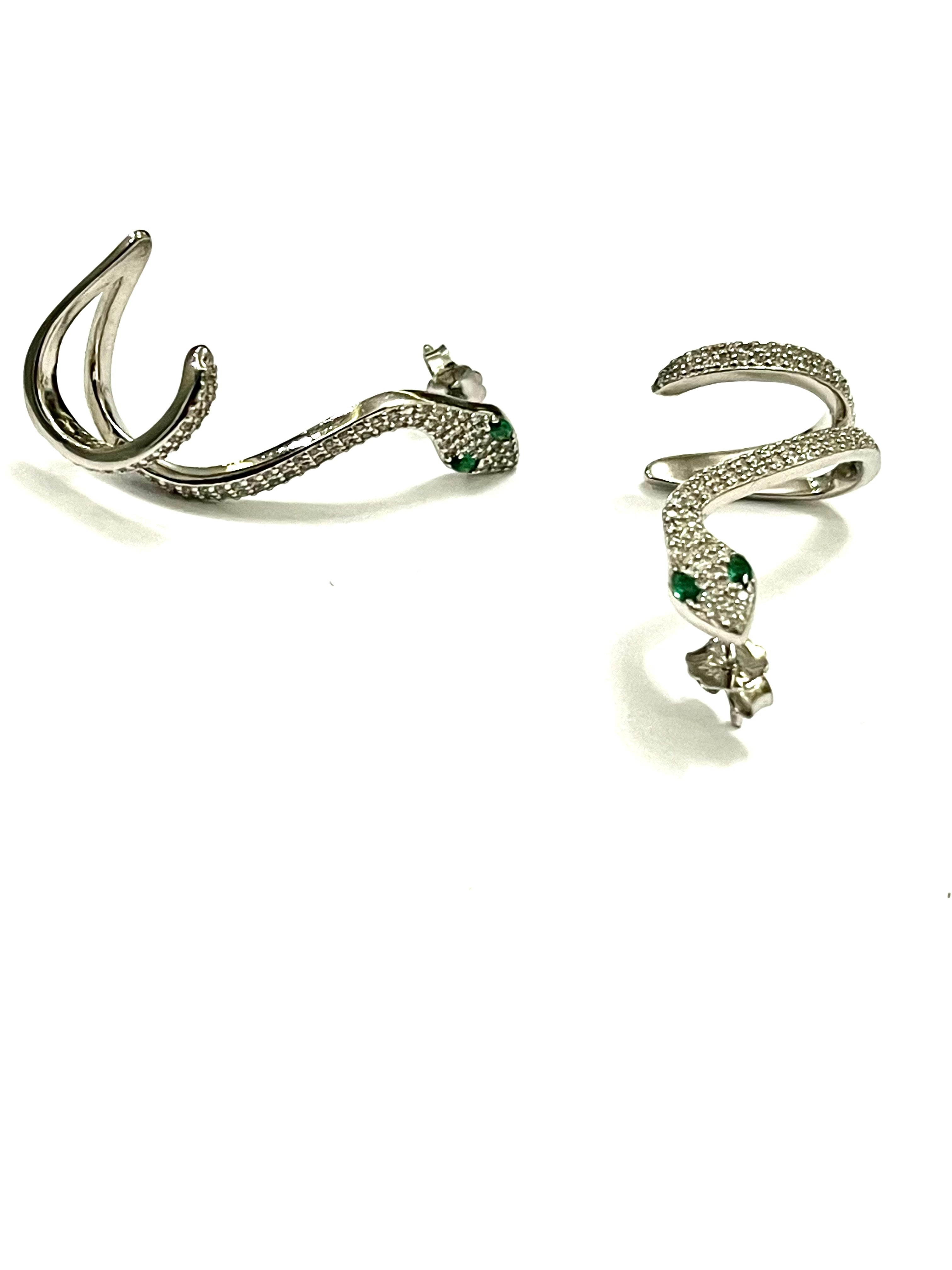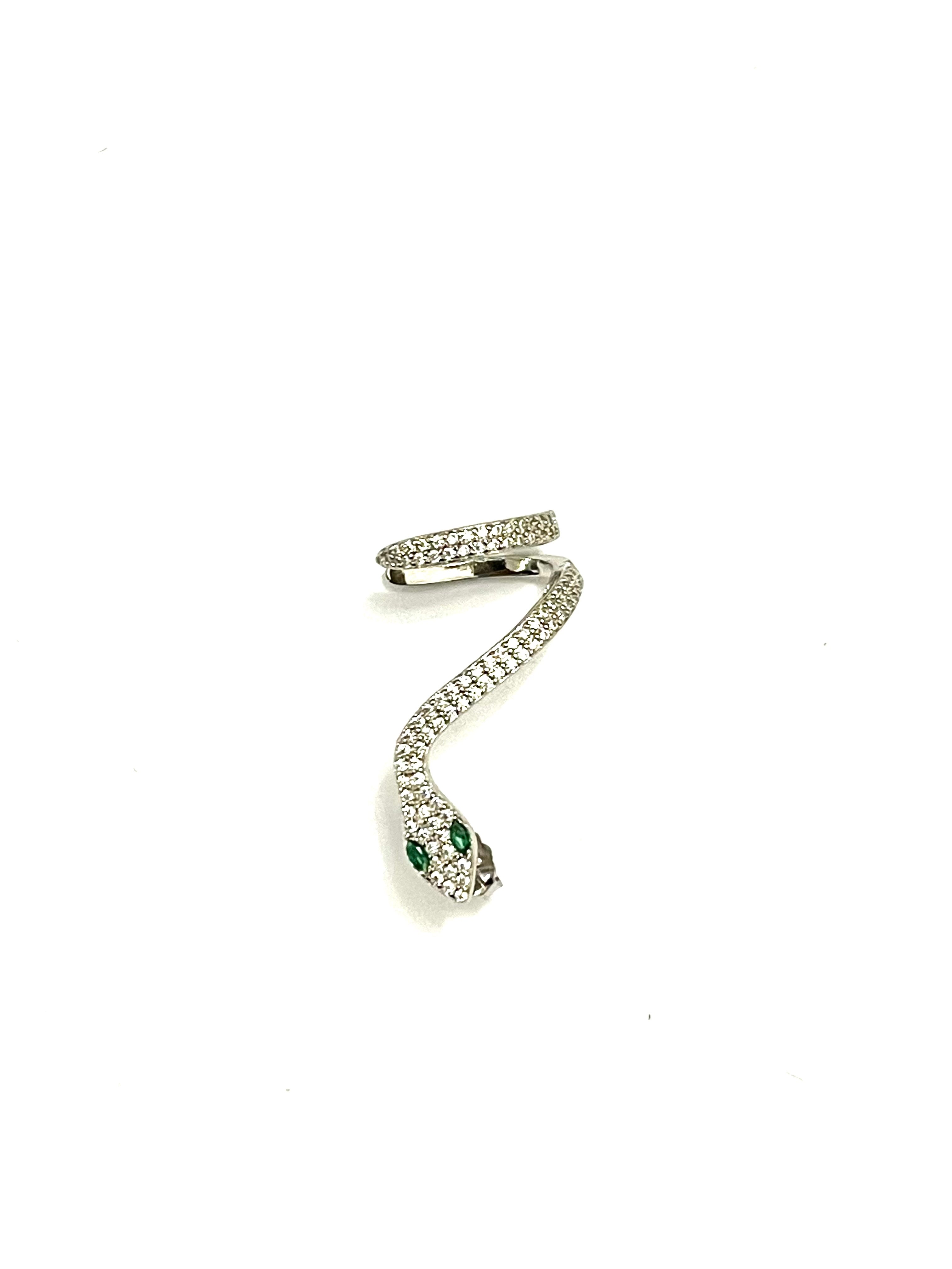 Orecchini / Ear cuff a serpente in zirconi bianchi e occhi in zircone verde in argento rodiato TIT925%
