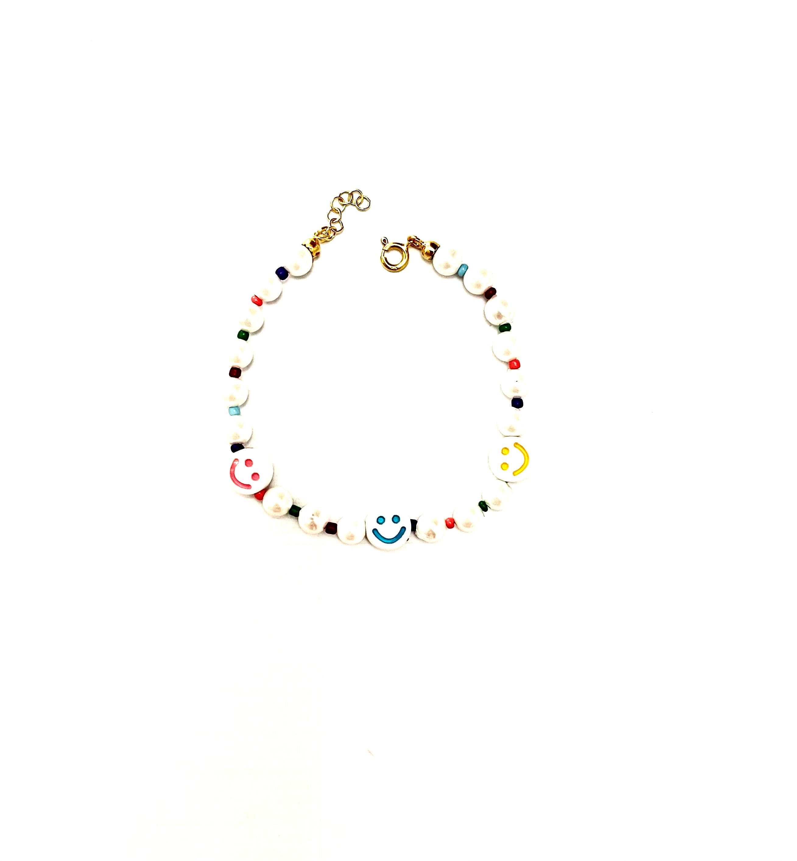Bracciale con perle coltivate in acqua dolce, smile in resina bianca e sfere lisce multicolore in argento dorato TIT925%