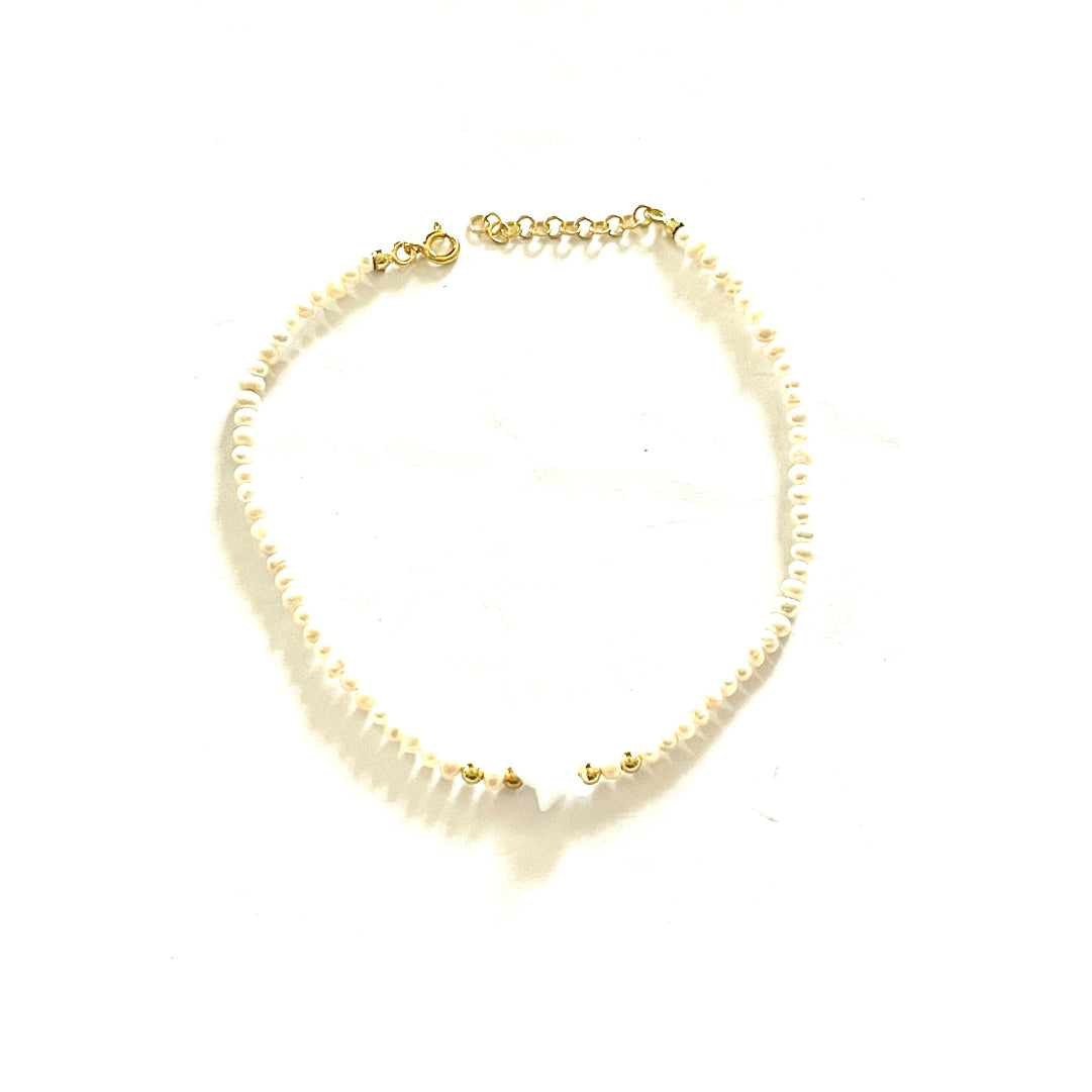 Cavigliera perle bianche e stella in resina con elementi in argento dorato TIT925%