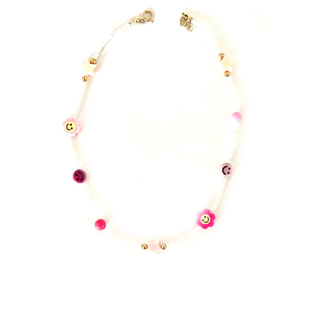Collana con perle ed elementi simile con i toni del rosa in argento doratoTIT 925%