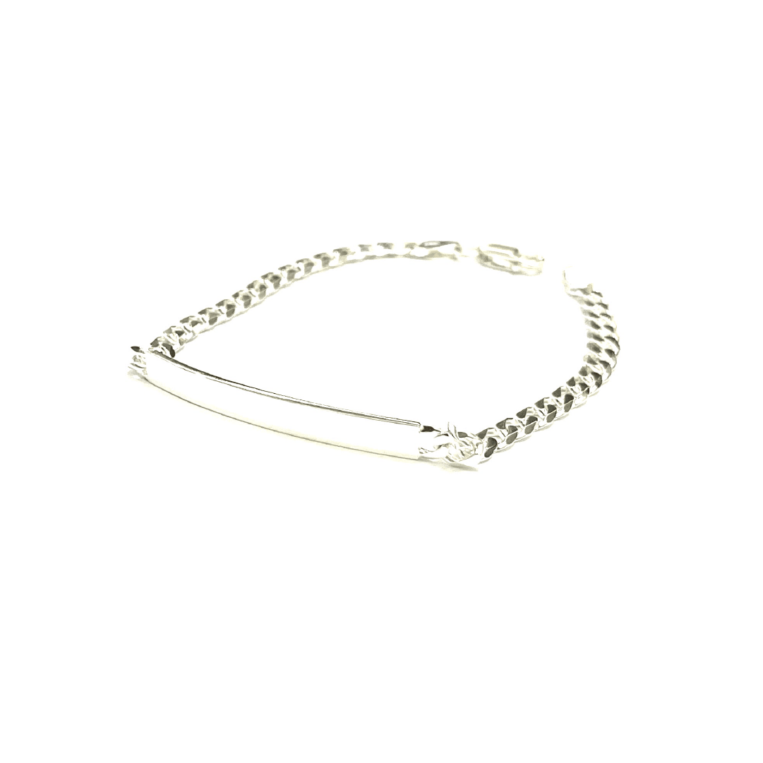Bracciale maglia groumette e lastra centrale rigida in argento rodiato TIT925%.