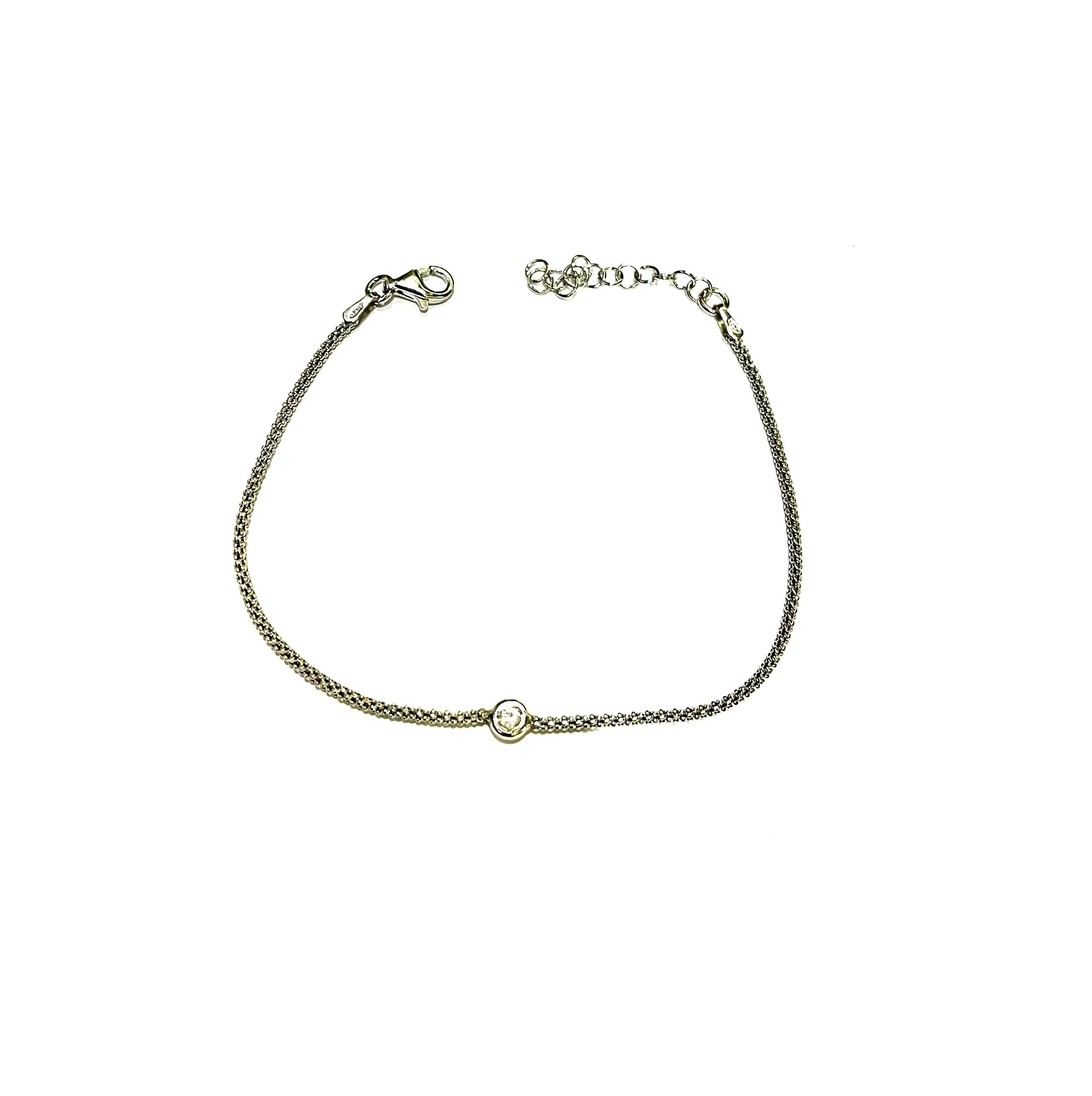Bracciale pop corn con zircone centrale bianco in argento rodiato TIT925%