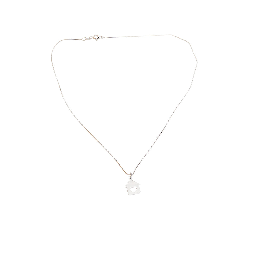 Venetian link necklace with a small house pendant made of rhodium plated silver TIT 925%.
