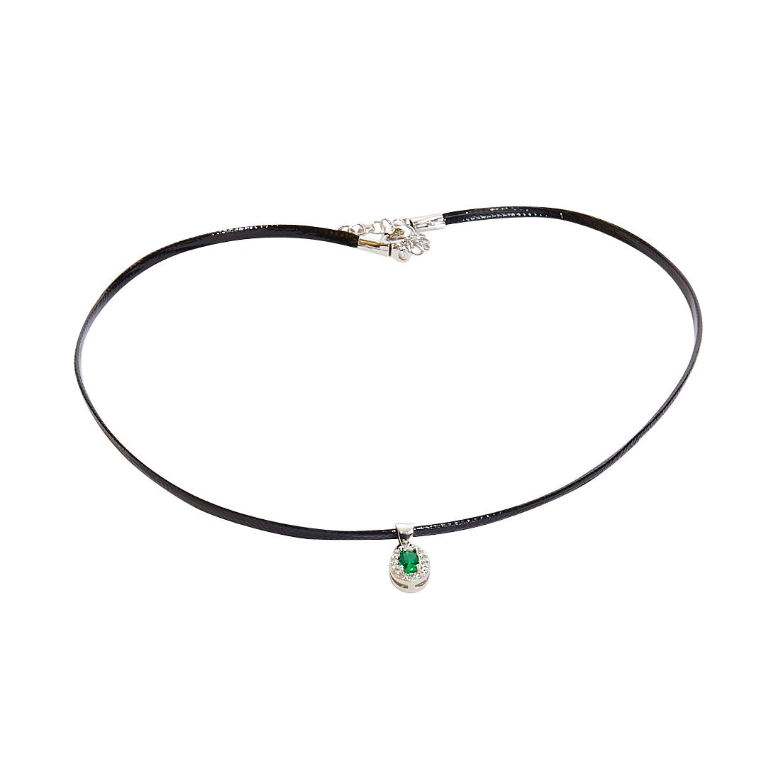 Choker with 6x8mm oval emerald cubic zircon pendant made of rhodium plated silver TIT925%.