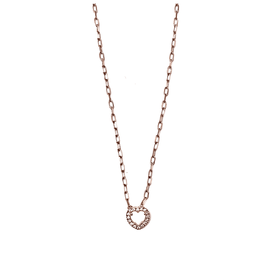 Rose gold-plated silver chain necklace with a heart pendant, a white hydrothermal stone and with an edge made of cubic zirconia.