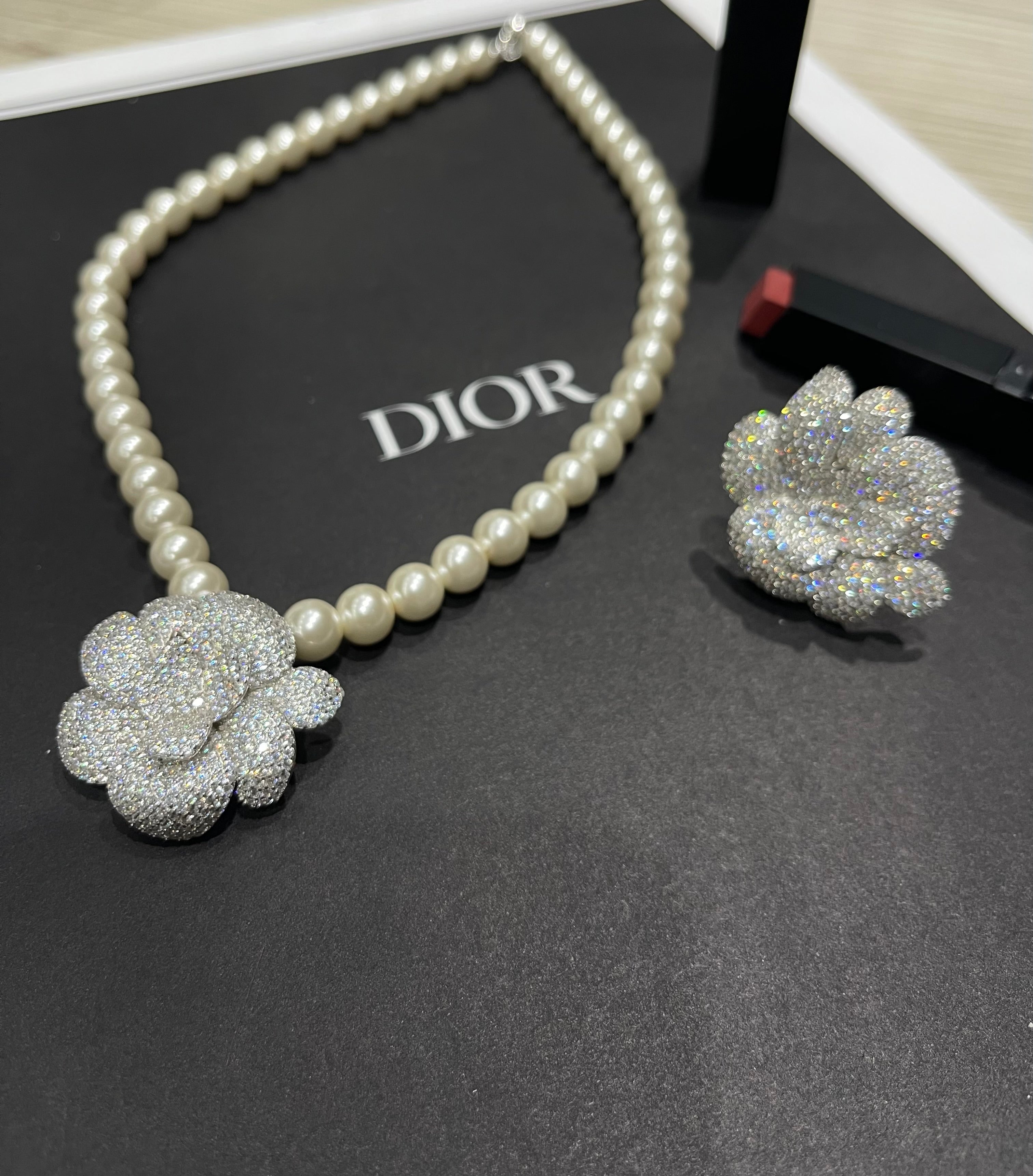 Collana perle con ciondolo fiore full pavé di zirconi bianchi placcato oro bianco in argento TIT925%