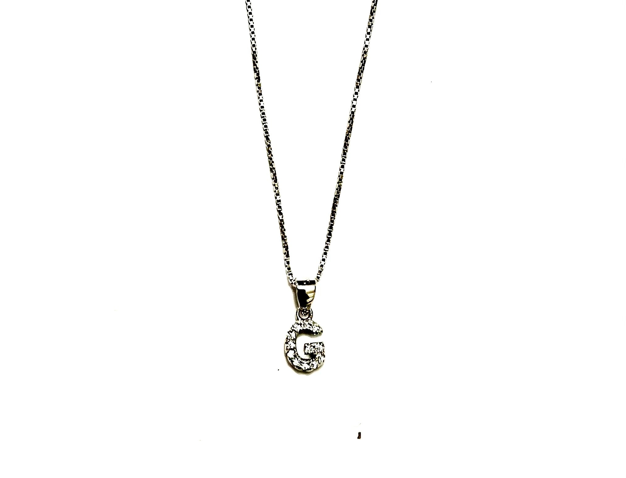 Collana veneziana con lettera pendente con zirconi bianchi in 19.90argento rodiato TIT925%