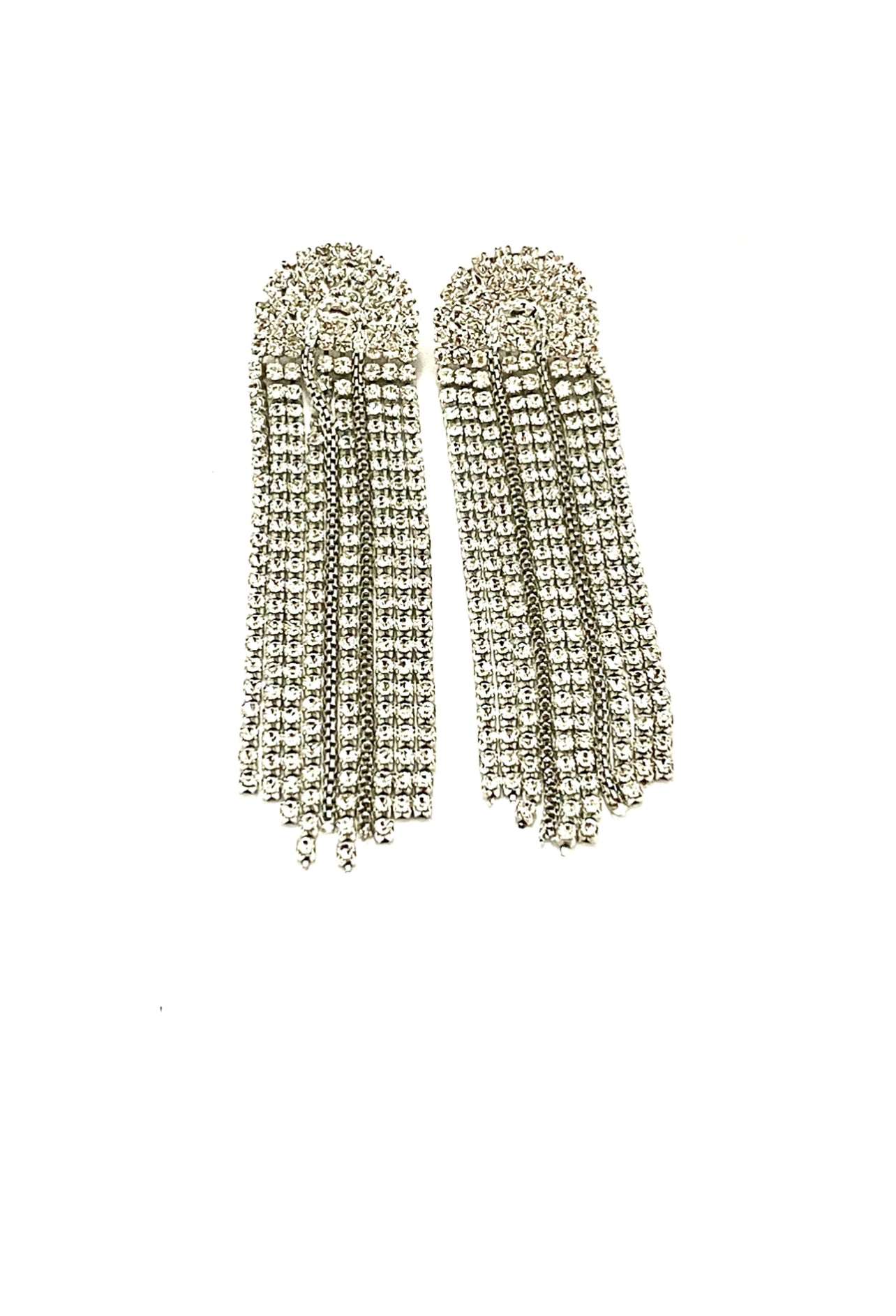 Lobe earrings with 10 hanging strands of crystal stones, white Swarovski stones, made in galvanic without Nikel, Rhodium plated.